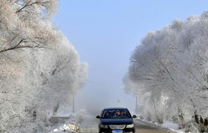 Photo taken on Nov 16, 2012 shows the winter scenery of rime at a farm in Heihe, Northeast China's Heilongjiang province.