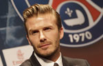 Soccer player David Beckham arrives for a news conference in Paris January 31, 2013.