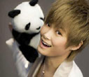 Li Yuchun poses with panda toy