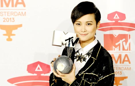 Chinese artist Li Yuchun won the award for Best Worldwide Act at the 2013 MTV European Music Awards gala.
