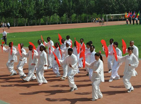 Foreign students learn Tai chi at Changchun University of Science and Technology.