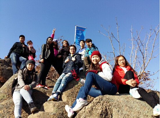 A bunch of students climbing on the summit of nearby Mao'er Mountain National Forest Park of Yanji city, in eastern part of Jilin province.