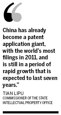 "China has already become a patent application giant, with the world's most filings in 2011, and is still in a period of rapid growth that is expected to last seven years," he said.