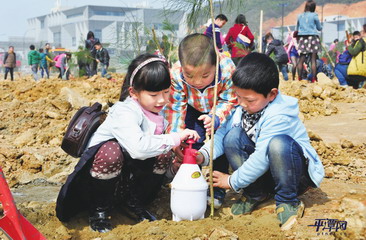 Some 150 volunteers took part in the campaign, jointly organized by the Pingtan Times and the Bureau of Forests and Parks, on a plot of barren land near the Haixia Bridge.