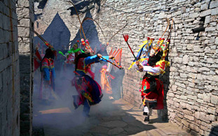 Miao villagers in Guiyang, Guizhou province, perform a drum beating ceremony on Wednesday in an age-old Miao festival honoring the dead that has been listed as part the city's intangible cultural heritage.