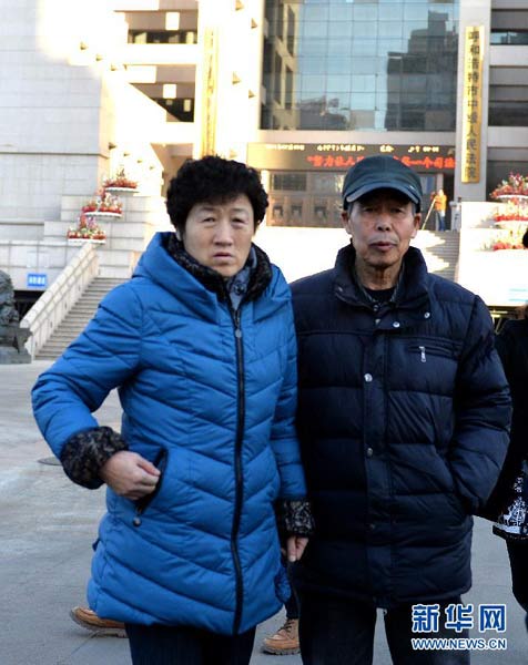 Huugjilt's mother, Shang Aiyun, 62, and his father, Li Sanren, 74, arrives at at Hohhot Intermediate People's Court, Monday. [Photo from Hohhot Intermediate People's Court’s official Weibo account]