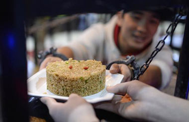 Photo taken on Jan 28, 2013 shows a seagull snatching a small fish from a slaty-blacked gull's mouth in Qingdao, east China's Shangdong. [Photo/Xinhua]