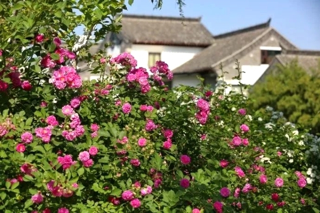 As the temperature rises, Chinese roses in Jinan, East China's Shandong province, are in full bloom, presenting a graceful view to visitors.