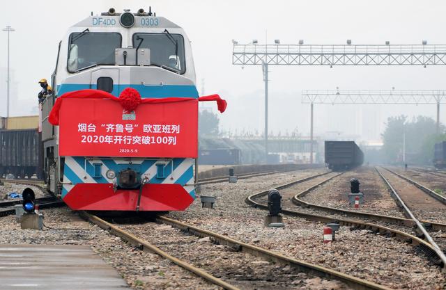 2020-05-11A freight train loaded with tires and mechanical equipment departed for central Asian countries from Yantai on May 11.