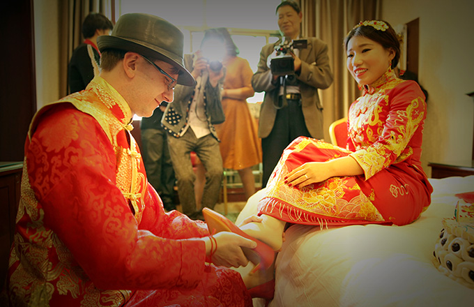 Chinese bride Zhang Xiaomei and her Polish groom Mathew held a fascinating traditional Chinese wedding witnessed by the whole county in Yuncheng city, Central China's Shanxi province on April 30, 2017.