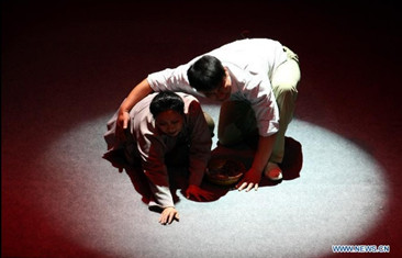 Actors from Shanxi Province perform during the contest for the 26th Plum Blossom Prize, in Chengdu, capital of southwest China's Sichuan Province, May 8, 2013.