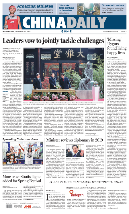 Leaders from China, Japan and the Republic of Korea reaffirmed on Tuesday their commitment to bolster regional economic integration and jointly tackle common challenges such as aging societies, healthcare and environmental protection.