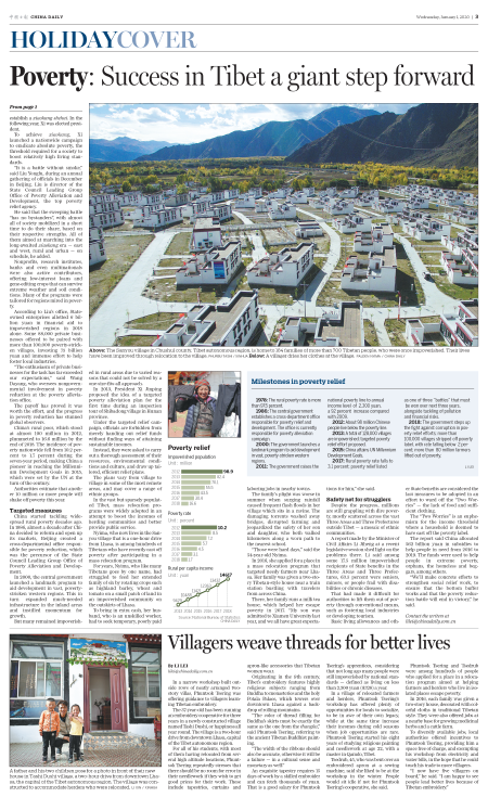 In a narrow workshop built outside rows of neatly arranged twostory villas, Phuntsok Tsering was offering guidance to villagers learning Tibetan embroidery.
