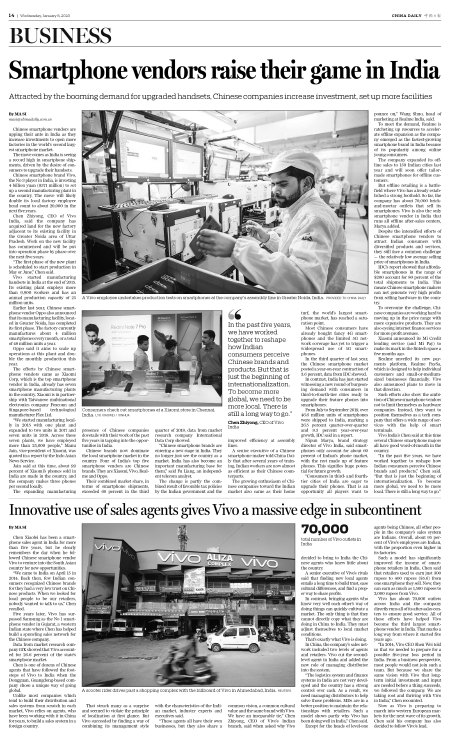 Chen Xiaofei has been a smartphone sales agent in India for more than five years, but he clearly remembers the day when he followed Chinese smartphone vendor Vivo to venture into the South Asian country for new opportunities.