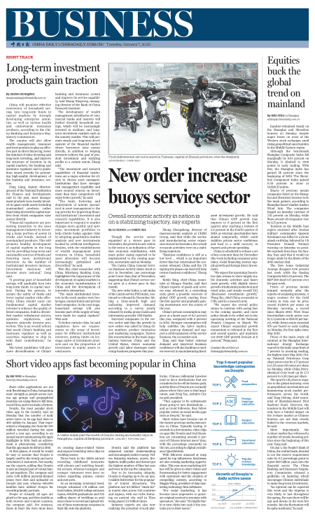 Though the service sector expanded at a slower pace in December, the growth in new orders in the sector is an indication of further economic stabilization, with more policy easing expected to be implemented in the coming quarters, economists said on Monday.