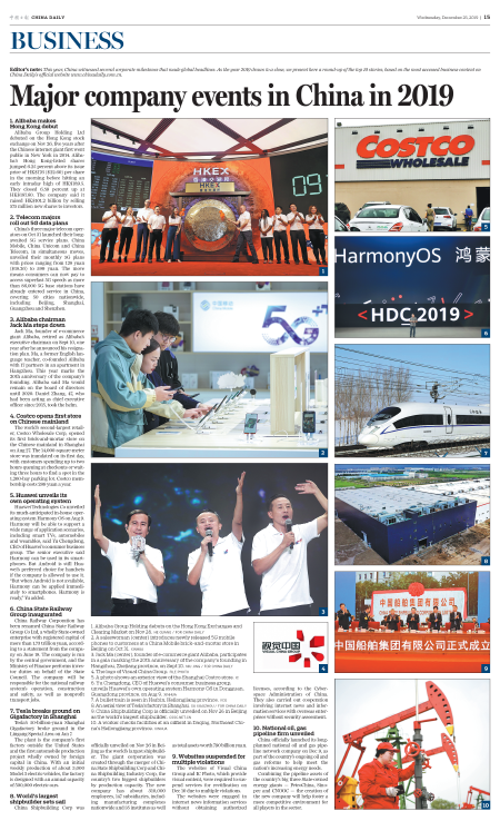 Editor's note: This year, China witnessed several corporate milestones that made global headlines. As the year 2019 draws to a close, we present here a round-up of the top 10 stories, based on the most accessed business content on China Daily's official website m.o-olink.com.