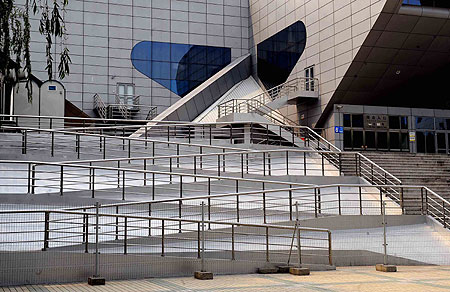 A photo taken on May 19, 2008, shows the barrier free access outside the University of Aeronautics & Astronautics Gymnasium. As a renovated venue, University of Aeronautics & Astronautics Gymnasium will be used to hold weightlifting competitions during the Olympic and Paralympic Games. [Xinhua]