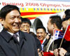 Liu Qi(front L), president of the Beijing Organizing Committee for the Games of the XXIX Olympiad (BOCOG), also the Communist Party of China chief of Beijing, arrives in Athens of Greece on March 29, 2008. [Xinhua]