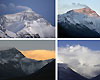 Chinese climbers hold the Olympic torch, the Olympic flag (L), the Chinese flag (C ) and the Beijing Olympics emblem at the peak of Mt. Qomolangma after the Olympic torch is lit at the peak of the mountain. The climbers carrying the Olympic torch stated to scale the peak at 3:00 am on Thursday morning and reached peak of 8848.43 meters around 9:17 am. [Xinhua]