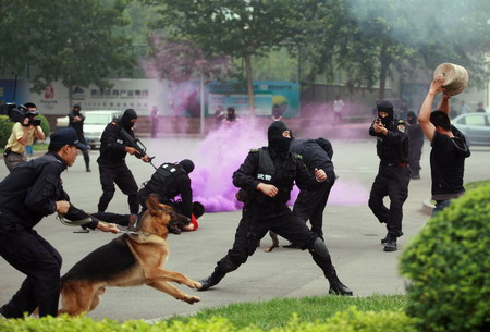 The first of its kind in Shandong to mobilize forces from the public security, armed police, health and city administration, the exercise was designed to test the provincial emergency response capacity and smooth the coordination among the forces, the newspaper said.