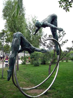 A photo taken on July 18, 2008 shows a sculpture named "Diving" in the Qinhuangdao Olympic Park in north China's Hebei Province. This theme park featuring Olympic Games has a music fountain and Olympic sculptures. [Xinhua]