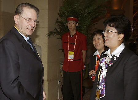 International Olympic Committee (IOC) President Jacques Rogge (L) arrives at the Beijing Hotel July 31, 2008. [Agencies]