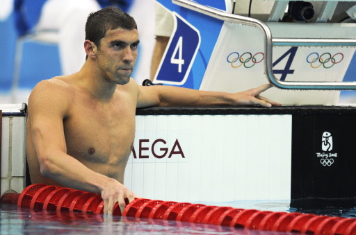 US swimmer Michael Phelps rests after winning the men's 200m butterfly swimming final at the National Aquatics Center during the 2008 Beijing Olympic Games in Beijing on August 13, 2008. Phelps won in a world record time of 1:52.03. [Agencies]