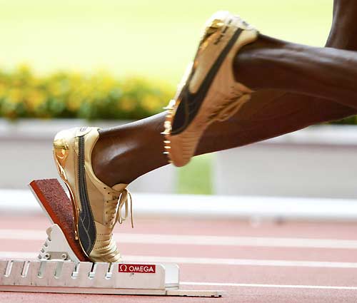 Usain Bolt of Jamaica sprints out of his blocks during his men's 200m heat of the athletics competition in the National Stadium at the Beijing 2008 Olympic Games August 18, 2008.[Agencies]