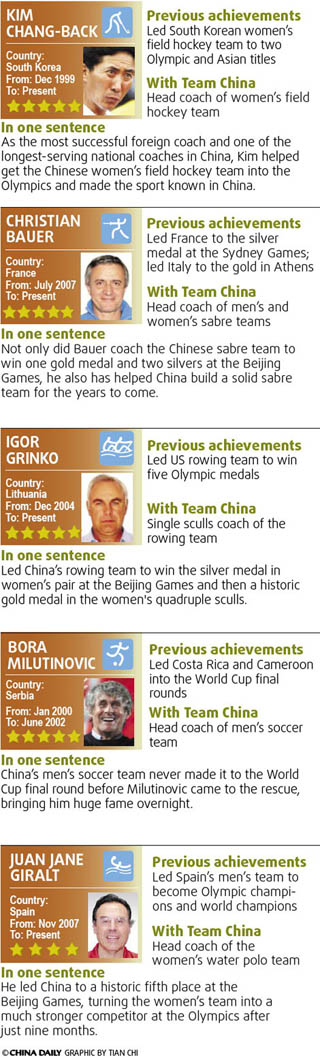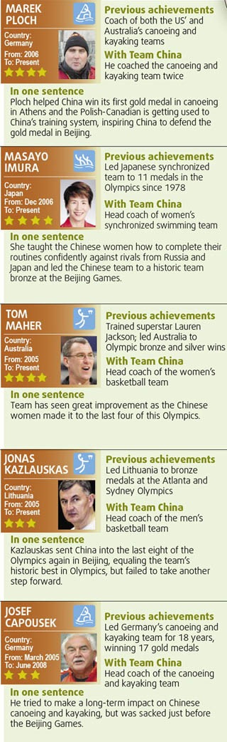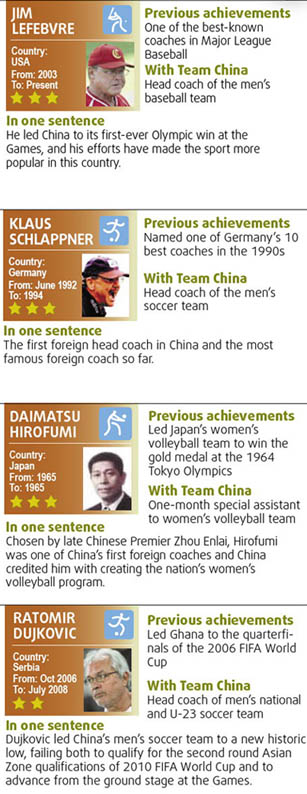 Still, many foreign coaches have found success in China and have led their teams to historic breakthroughs at the Beijing Games.