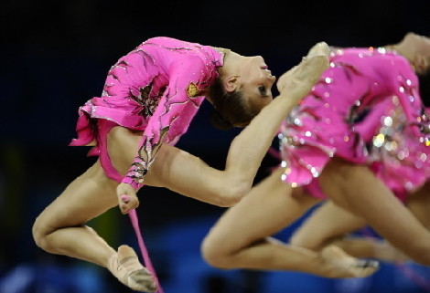 Russia perform during the group all-around final of the rhythmic gymnastics competition at the Beijing 2008 Olympic Games August 24, 2008. [Agencies]