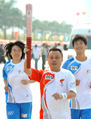 The torch relay was launched with Olympic weightlifting medalist Zhang Xiangxiang running the first leg on the People's Square in the center of the city.