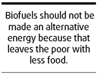 And even after rising food prices have pushed 100 million people worldwide below the poverty line and sparked riots in different continents, the developed and developing countries are still divided on the main reasons for the food crisis. We cannot afford to wait and see these problems sort themselves out since the strain they are putting on the world economy looks increasingly menacing. The G8 summit provides a good opportunity for decision-makers from both developed and developing countries to reach a clear understanding on common concerns and coordinate their efforts to address them. A confidential World Bank report recently obtained by the Guardian may have shed some urgently needed light on the main cause of the food crisis. Based on the most detailed analysis of the food crisis so far, the report concluded that biofuels have forced global food prices up by 75 percent, emphatically contradicting the US government's claims that plant-derived fuels contribute less than 3 percent to food-price rises. Some developed countries had once linked higher food prices to higher demand from India and China, but the World Bank study disputes that: "Rapid income growth in developing countries has not led to large increases in global grain consumption and was not a major factor responsible for the large price increases." With such clarification about the root cause of the steep hike in food prices at present, it is no longer business as usual for plant-derived biofuel programs aimed to reduce some countries' emissions of greenhouse gases and their dependence on imported oil. (China Daily 07/08/2008 page8) |