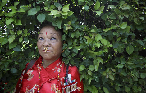 A Nepalese Indigenous woman attends a program to mark the International Day of the World's Indigenous People in Kathmandu August 9, 2011. Various ethnic and indigenous people of Nepal took part in a parade calling for a preservation of their cultural identity.[Photo/Agencies]