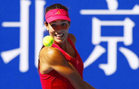 China's Li Na hits a shot during her match against Romania's Monica Niculescu at the China Open tennis tournament in Beijing Oct 2, 2011. [Photo/Agencies]
