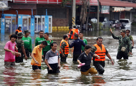 Locals look at a river where people were washed away in Ciudad Satelite, Mixco, in the outskirts of Guatemala City Oct 18, 2011. According to local media, three people were washed away by the river in Ciudad Satelite due to a landslide caused by heavy rains. Guatemalan authorities on Wednesday declared the country in "red alert" after a tropical storm called 12E hit. According to the National Coordination of Disaster Reduction, 44 people have died and thousands are affected by the rains. [Photo/Agencies]
