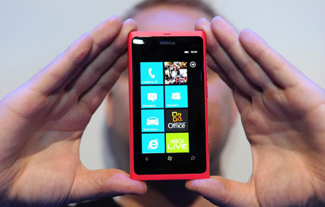 The new Nokia smart phone Lumia 800 is shown off at Nokia world, London, Oct 26, 2011. [Photo/Agencies]