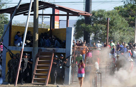 Two chaplains from Canada and Belgium watch a performance of the Rebel 300 aerobatic aircraft flown by Tony Blair of Australia's Blair Aerosports during an aerial display at the Singapore Airshow in Singapore Feb 16, 2012. The largest airshow in Asia runs from Feb 14 to Feb 19. [Photo/Agencies]
