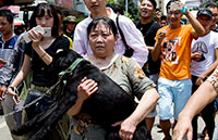 A combination photo of members of the Red Noses clown doctors, Nov 7, 2012. Since 2004 the 15 clown doctors, inspired by the US Doctor 'Patch' Adams, visit different hospitals throughout Slovenia 2-3 times a week, using laughter to help aid the recovery of young and elderly patients suffering from serious illness or injury. [Photo/Agencies]