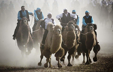 Thrill-seekers sit upside down in a fairground ride in Jinan city, East China's Shandong province, Sept 20, 2013. [Photo/Xinhua]