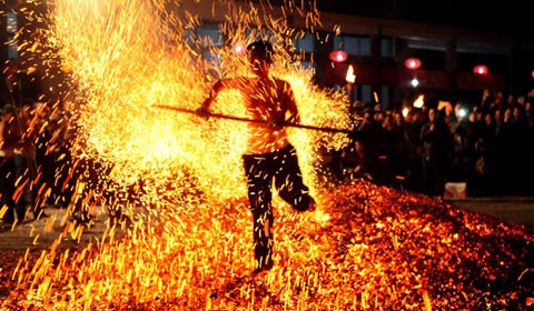 Local folk artists spend weeks making figures of weaved straw, which are usually burned or used as fertilizer in Yongjia, East China's Zhejiang province, Nov 5, 2013. The figures include a buffalo, gooses, ducks and shepherd boy. [Photo/icpress.cn]