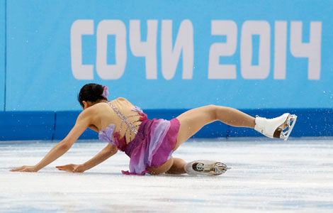 Germany's Andi Langenhan speeds down the track in the men's singles luge competition at the 2014 Sochi Winter Olympics February 9, 2014. [Photo/Agencies]