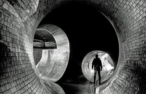 Photographer Mike Deere shot this image in the sewer network beneath River Westbourne, London, where he found parts of abandoned cranes, wells, ventilation shafts, work benches, tools and even the remnants of workers' meals from decades ago. [Photo/icpress.cn]