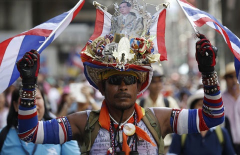 US Vice-President Joe Biden (center) gives a thumbs-up during lunch at Yao's Chaogan'er Restaurant in Beijing in August 2011. [Ng Han Guan/AFP] |