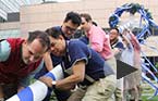 During their visit to the scenic base, located in the northern suburbs of Chengdu, they gave out a collective "wow" as they watched a family of pandas eat their breakfast of bamboo.