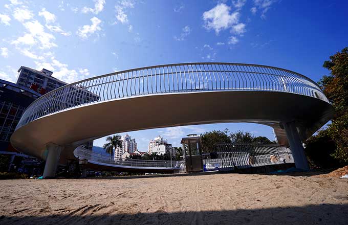 A banner which reads "accelerate housing reconstruction and improve farmers' income" is seen on scaffolding at the construction site of Shuangqiao and Jiqiao villages in Funing county, Jan 17, 2017. The site, covering an area of some 11 hectares, is the largest settlement area in Yancheng for victims of two villages hit by the tornado and hailstorm on June 23, 2016. The new community is expected to house 1,032 households. [Photo by Yang Yang/China Daily] |