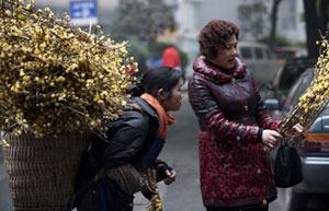 Zhou is a resident from Dianjiang county of Chongqing. She makes a living and pays for her two children's education by selling wintersweet from 6 am to 11 pm every day.
