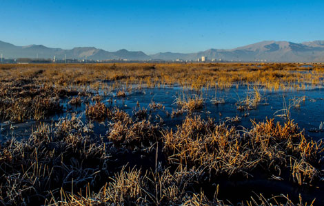 The lights are turned on for a giant menorah at the Reading Power Station in Tel Aviv, on the Jewish holiday of Hanukkah, Israel, Dec 4, 2013. Israel's electric company said on Wednesday it had created the world's largest menorah consisting of nine aerial platforms reaching 28 meters and lit with nine white light beams reaching the height of ten kilometers. Hanukkah, also known as the Festival of Lights and one of the most important Jewish holidays came to an end on Wednesday. [Photo/Agencies]