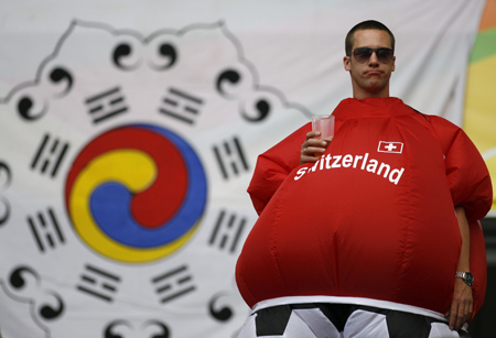 A Switzerland fan waits in the stands before the Group G World Cup 2006 soccer match between South Korea and Switzerland in Hanover June 23, 2006.