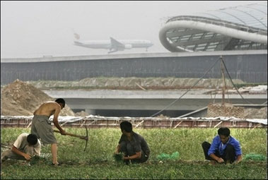 fields at the construction site for the new airport terminal (R) being