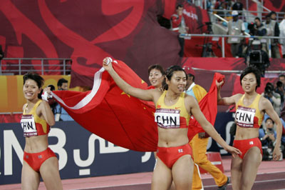 Bahrain's Maryam Yusuf Jamal won the women's 1,500m making it a golden double following her victory in the 800m on Saturday. The 23-year old former Ethiopian, who has enjoyed an impressive season this year with victories in the World Athletics Final in Stuttgart and the IAAF World Cup in Athens, was in a class of her own as she finished in 4:08.63, more than six seconds ahead of Japanese runner-up Yuriko Kobayashi. Qatar's James Kwalia C Kurui delighted home fans as the 20-year- old former Kenyan won the men's 5,000m final in 13:38.90, followed by Bahrain's Mucheru Salem Jawher and another Qatari Sultan Khamis Zaman. Manjeet Kaur led an India quartet to a come-from-behind victory in the women's 4x400m relay final, clocked a winning time of 3 minutes 32.95 seconds. Kazakhstan grabbed silver in 3:33.86, while China had to settle for the third place in 3:33.92 after leading for the first three legs. Saudi Arabia emerged as the winner of the men's 4x400m relay, the last event of the six-day athletics competition, in 3:05.31. India and Sri Lanka finished second and third respectively. Although Liu Xiang was one of the few world class athlete in track and field events after Japan's Olympic hammer throw champion Koji Murobushi and two-time world 3,000 steeplechase champion Saif Saaeed Shaheen of Qatar pulled out due to injuries, only a few hundred spectators turned out at the Khalifa Stadium to watch the 23-year-old Shanghai native demolish his rivals in the final. Liu said he was very satisfied with his performance in the 2006 season, which saw him win eight out of 10 international competitions. "This year was another peak for me following the Athens Olympic Games," he said. Liu shocked the world in Athens 2004 when he won the Olympic gold medal with a then world-record-tying time of 12.91 seconds. Liu's coach Sun Haiping said he was also delighted with the results. "Liu's time was under 13.20, and Shi gave his best ever running, so I am extremely satisfied," said Sun. Heavily favored to win this last race of this season, Liu had set a modest target of 13.20 before the Asian Games. |